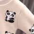 -Un tricou gros din bumbac de înaltă calitate, de culoare crem, cu model de mici panda. Manșete elastice la talie și la mâneci pentru confort + interior de pluș.