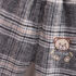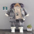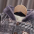 -O haină călduroasă, cu umplutură de vată și căptușeală de pluș, realizată din material rezistent, cu model în carouri gri și alb. Design cu croială dreaptă, glugă pufoasă, două buzunare în față și închidere cu nasturi. Accesoriu special – broderie cu imaginea unui ursuleț pe spate, pentru un aspect unic.
