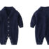 -Salopetă tricotată, de culoare albastru închis, cu modele artizanale diverse și un guler mare în formă de V. Închidere cu nasturi evidențiați, de culoare grafit, pe toată lungimea, pentru o îmbrăcare ușoară.