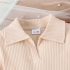 -Bluză, confecționată din material ripsat moale, de culoare bej. Model cu mâneci lungi și guler clasic, cu un decolteu discret în formă de V, care oferă un aspect elegant și simplu.