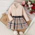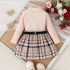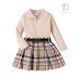 Set de 2 piese cu bluză cu guler clasic și fustă plisată Plaid Elegance Beige