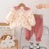 Set de 2 piese cu guler frumos, bucle și cireșe 3D Pink Primrose