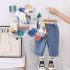-Pantaloni din denim, confecționați din material clasic de blugi, în nuanță albastră, completați cu aplicații cu ursuleți. Talia este elastică, oferind confort maxim la purtare. Dispune de două buzunare laterale și este finisat cu manșete rulate în partea de jos, oferind un aspect modern și stilat.