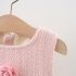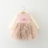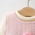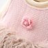 -Rochie căptușită, realizată din pluș boucle de culoare roz, decorată cu o frumoasă aplicație 3D detașabilă în formă de floare. Închidere la spate cu fermoar ascuns. Partea de jos impresionează printr-un finisaj pufos și voluminos din material moale cu fire, care oferă un aspect unic și festiv.