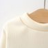 -Bluză călduroasă, căptușită cu vată, cu mâneci lungi, confecționată din material reiat moale, cu guler tip helancă, de culoare crem cald.