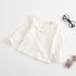 -Bluză albă din bumbac, cu mâneci bufante ușoare, guler dantelat rafinat și volănașe elastice la manșete, pentru un plus de eleganță.
