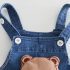 – Salopetă din denim cu bretele reglabile prin nasturi + un accent mare 3D cu ursuleț în partea din față.