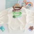 – Bluză/Hanorac din material de bumbac de înaltă calitate, de culoare albă. Model cu elastic la talie și mâneci pentru confort în mișcare, cu imprimeuri adăugate în partea de sus, asortându-se perfect cu salopeta.