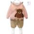 Set matlasat de 2 piese cu broderie 3D de pluș Cuddly Bear Pink