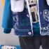 -O vestă modernă din denim de culoare albastru indigo, cu un design cu ursuleți și inscripții. Modelul este captusit cu o blăniță albă, specifică sezonului, guler pufos și buzunare atrăgătoare. Închidere cu nasturi metalici.