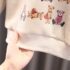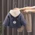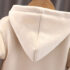-Jachetă trendy, din material plușat și gros, în nuanță bej deschis, cu o decorațiune de ursuleț ca element central.