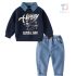 Set de 3 piese cu bluză/hanorac modern cu guler din denim și pantaloni din denim Trendy Honey Bear Navy