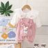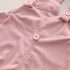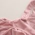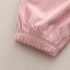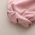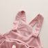 – Salopetă roz din catifea moale, cu bretele reglabile + elastic la craci pentru confort.