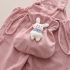 – Geantă din catifea, asortată cu salopeta și o broșă în formă de iepuraș 3D.