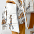 -Bluziță/sweatshirt din bumbac alb, cu mâneci lungi și imprimeu vesel cu animale – girafe, lei și elefanți. Prevăzută cu manșete elastice reiate pentru confort.