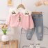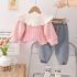 Set de 3 piese din bomber cu guler Peter Pan și elemente 3D, bluză și pantaloni din denim Sweet Hopper