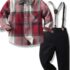 Set sportiv-elegant de 4 piese cu cămașă de lână, papion și bretele Red Kare Boy