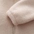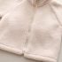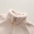 -Palton din pluș, de culoare albă, cu interior din vată plușată și pufoasă. Model cu croială standard, guler înalt și închidere completă în față cu fermoar. Accentul modelului – broderii, elemente 3D și aplicație ce reprezintă un ursuleț pe partea din spate.