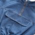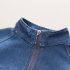 -Hanorac din material denim rezistent, cu design modern. Model cu guler înalt și fermoar scurt în față + elastic în talie și la mâneci pentru confort + buzunar frontal fals.