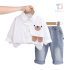 Set modern de 3 piese din cămașă cu guler clasic, aplicație și pantaloni din denim Little Gentlebear