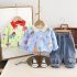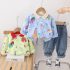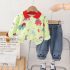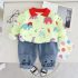 Set Premium de 2 piese cu guler, pantaloni din denim și broderie Jurrasic Joy Green