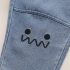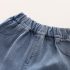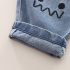 -Pantaloni din denim cu elastic în talie, două buzunare și elemente brodate în partea de jos a pantalonilor.