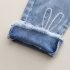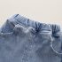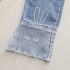 -Pantaloni din denim, cu talie elastică și buzunare, broderii adăugate + margini nefinisate la cracii pantalonilor.