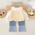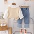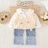 Set premium de 3 piese cu vestă din tricot fin, cu elemente 3D, cămașă cu guler Peter Pan și pantaloni din denim Bunny Loves Beige