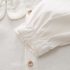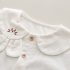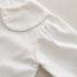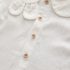 -Cămașă moale, de culoare albă, cu mâneci elastice și bucle, guler tip „Peter Pan”.