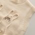 -Vestă din tricot fin, cu o croială standard. Elemente 3D și broderii care reprezintă iepurași + un pompon în partea de jos, care completează întreaga ținută.