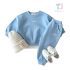 -Bluziță din material de bumbac, de culoare albastră. Model cu croială standard, cu manșete elastice la talie și încheieturi pentru confort maxim în timpul purtării și cu broderie pe față pentru un aspect unic.