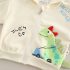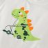 -Tricou, realizat din material ușor și rezistent, de culoare albă, cu un imprimeu frontal reprezentând un dinozaur.