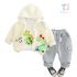 -Hanorac, confecționat din material de bumbac, de culoare crem. Decorat cu imprimeu și elemente 3D, care oferă unicitate și un aer jucăuș. Se închide cu fermoar pentru o îmbrăcare ușoară și are manșete elastice pentru confort.