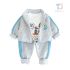-Hanorac din material moale și de înaltă calitate din bumbac, în combinație de gri deschis cu detalii contrastante albastre pe laterale. Guler înalt, care oferă protecție și evidențiază stilul sportiv. Închidere cu fermoar pe toată lungimea, pentru o îmbrăcare ușoară și confortabilă. Model cu broderii decorative și imprimeuri – un mic dinozaur și inscripții jucăușe, care adaugă un accent distractiv. Buzunare laterale practice, perfecte pentru mâini mici sau obiecte mărunte.
