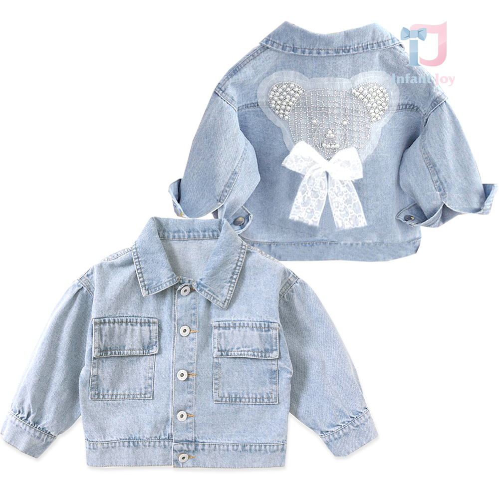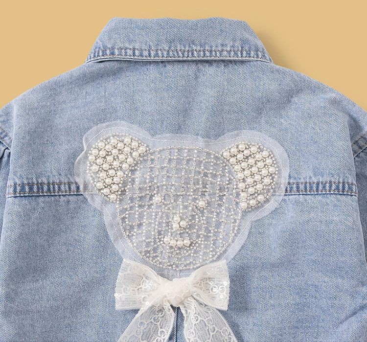 Jachetă denim premium cu guler clasic, perle și mărgele Bear Pearl
