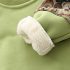 -Bluză din bumbac moale de culoare mentă, cu o căptușeală interioară din polar, care oferă căldură și confort. Modelul are o croială gratuit, cu mâneci melanj decorate cu un imprimeu colorat unic, completat cu o broderie pe o parte, ce finalizează designul.