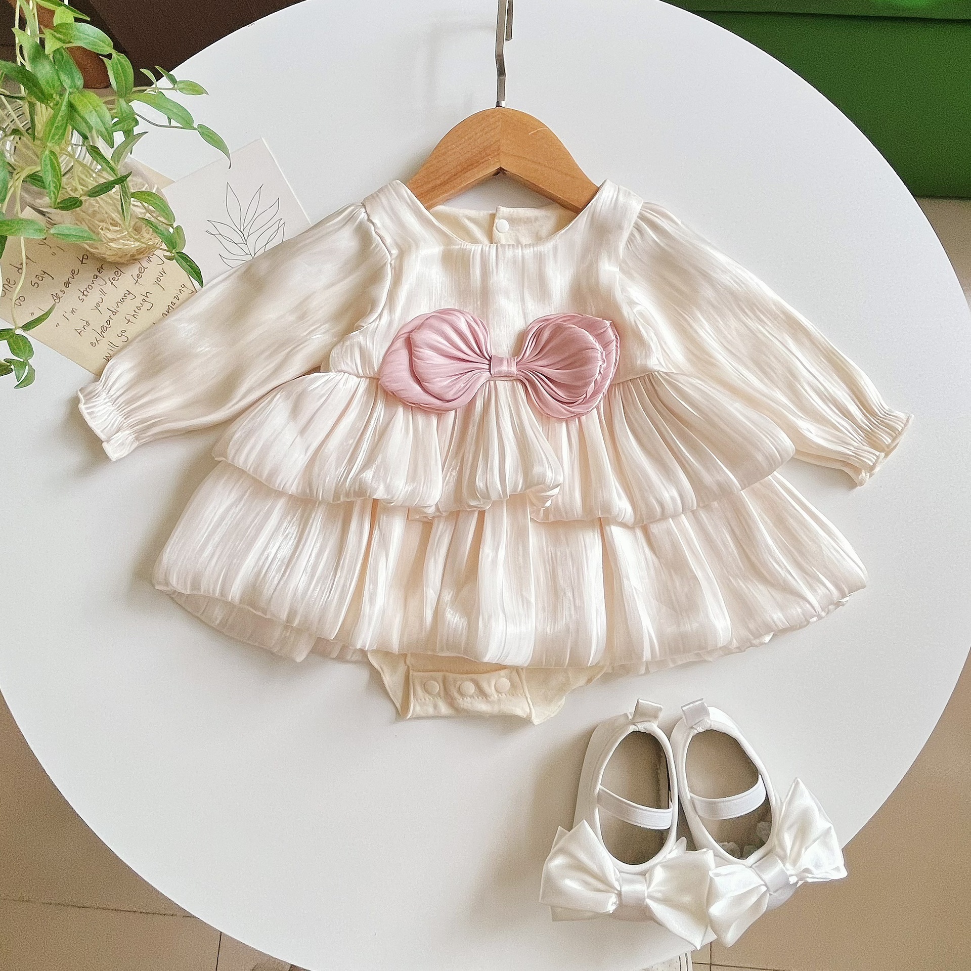 🤍 Rochie-body extrem de delicată pentru fetiță, într-o nuanță de vanilie – diafană, elegantă și creată pentru micile prințese și momente speciale