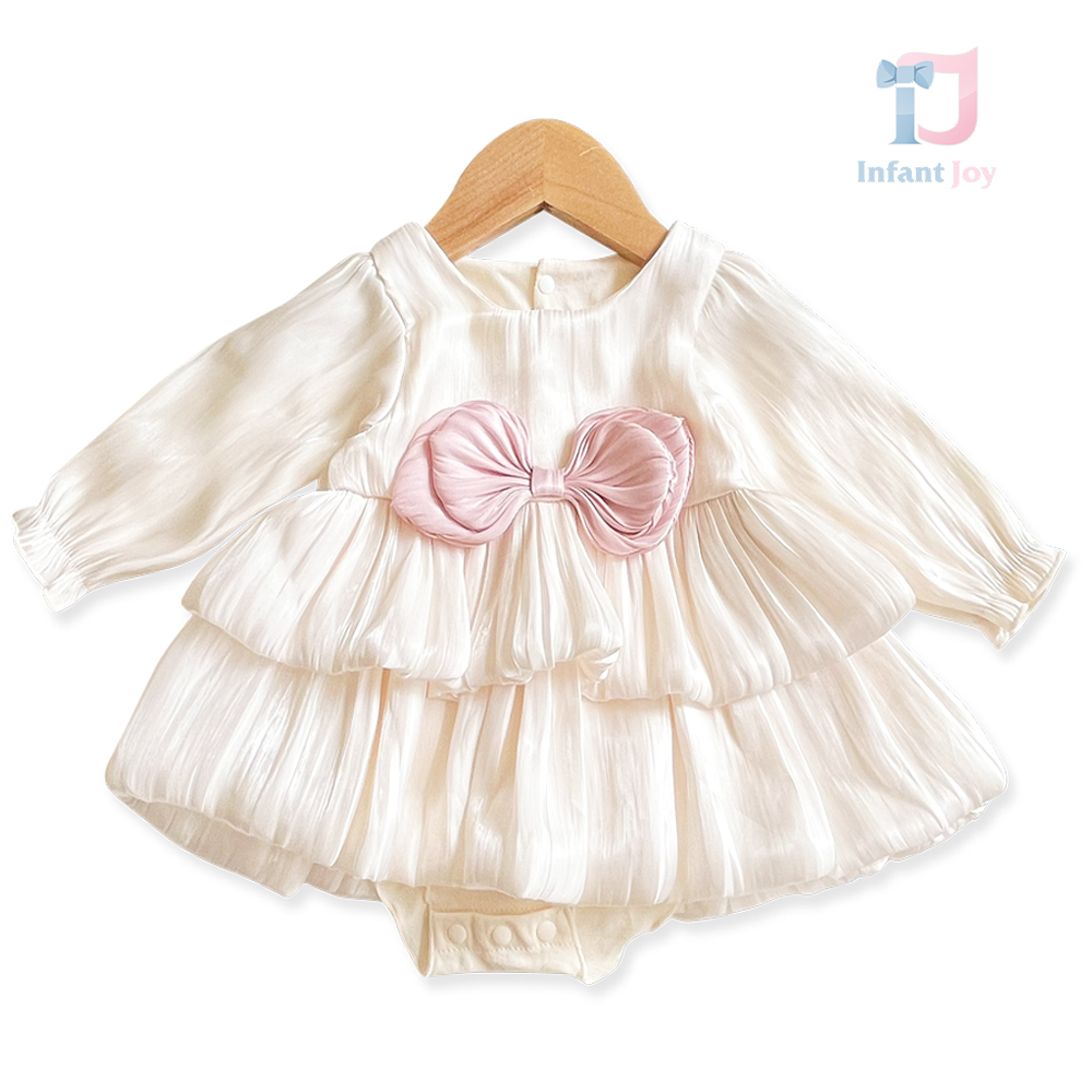 Body/rochie premium din organza cu fronseu și fundă 3D Mini Ribbon Vanilla