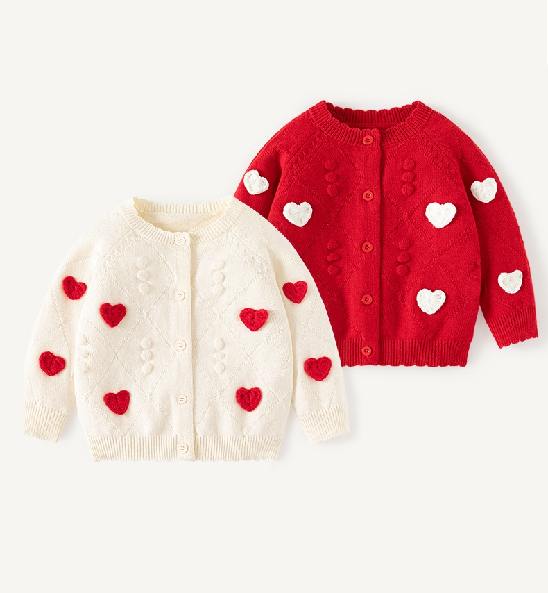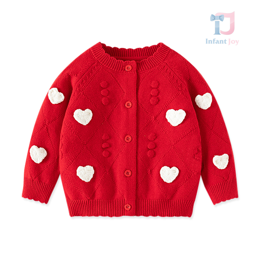 Cardigan Premium din tricot, decorat cu inimi 3D Heart Babe Red