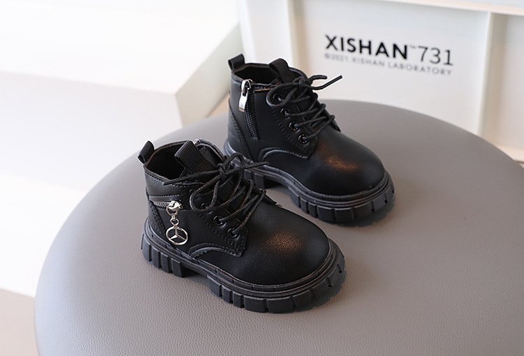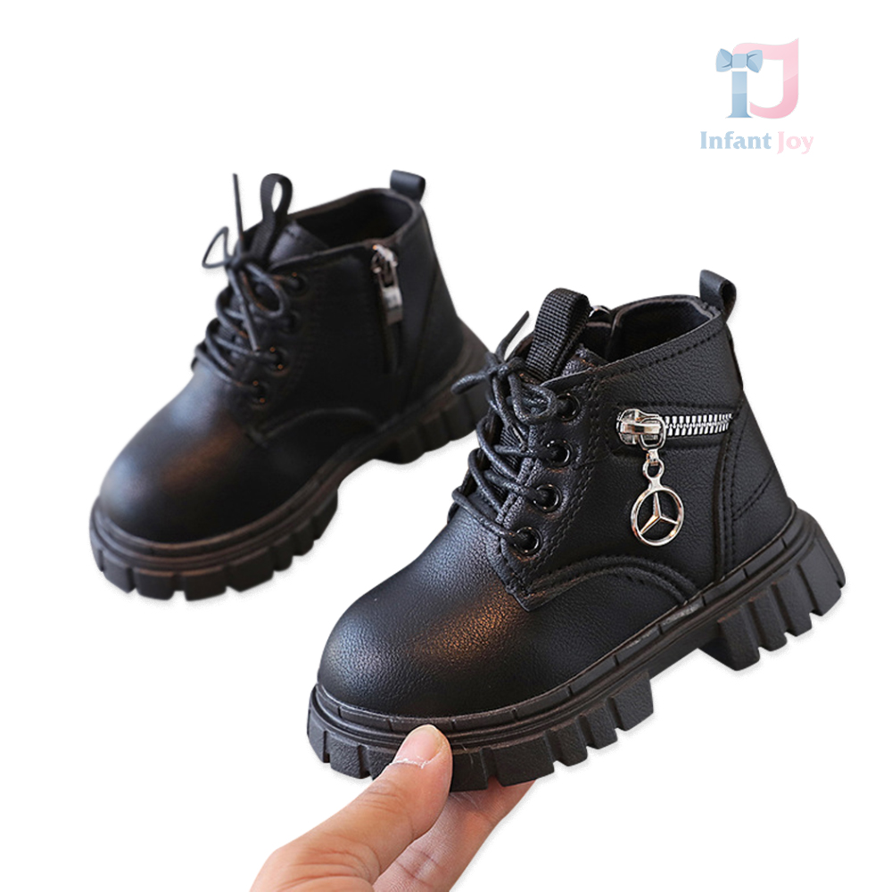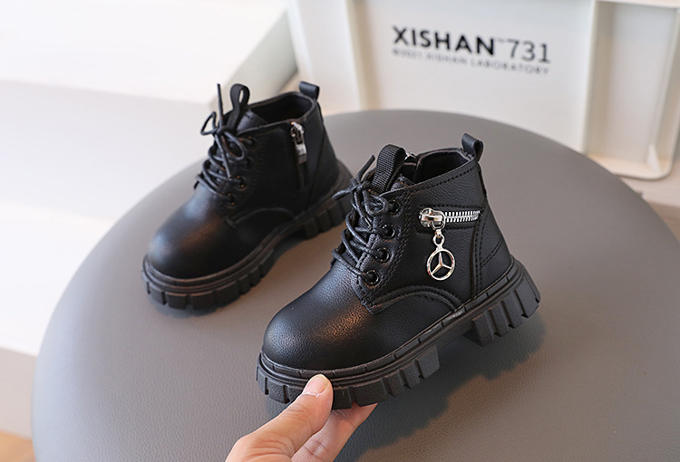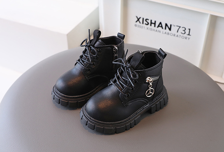Cizme din piele ecologică cu fermoar și cravate Benz Black