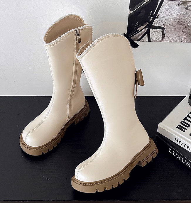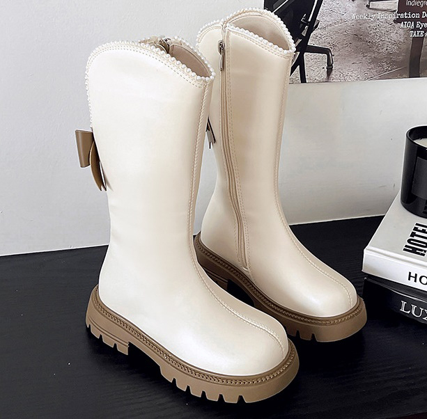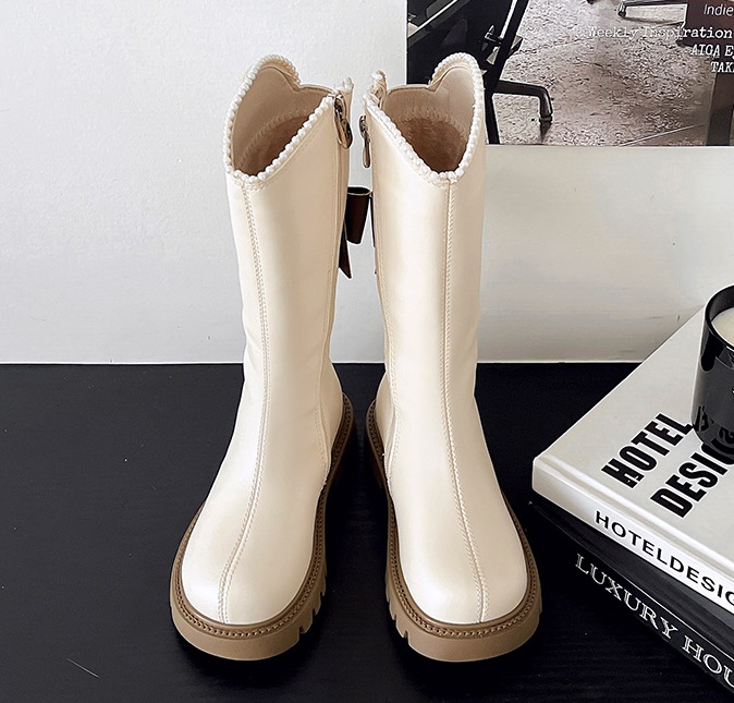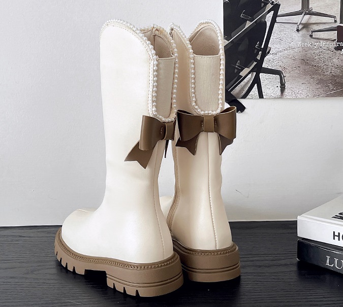Cizme elegante Premium cu perle și panglici Miss Caprice Vanilla