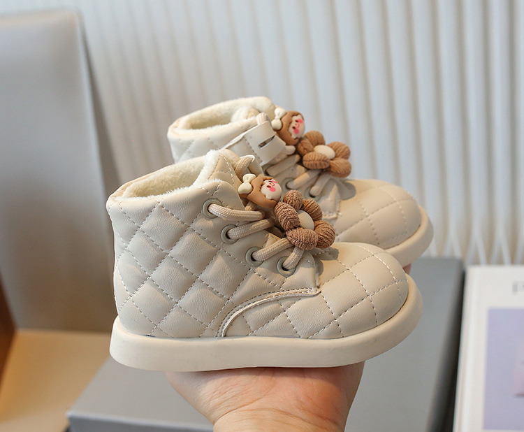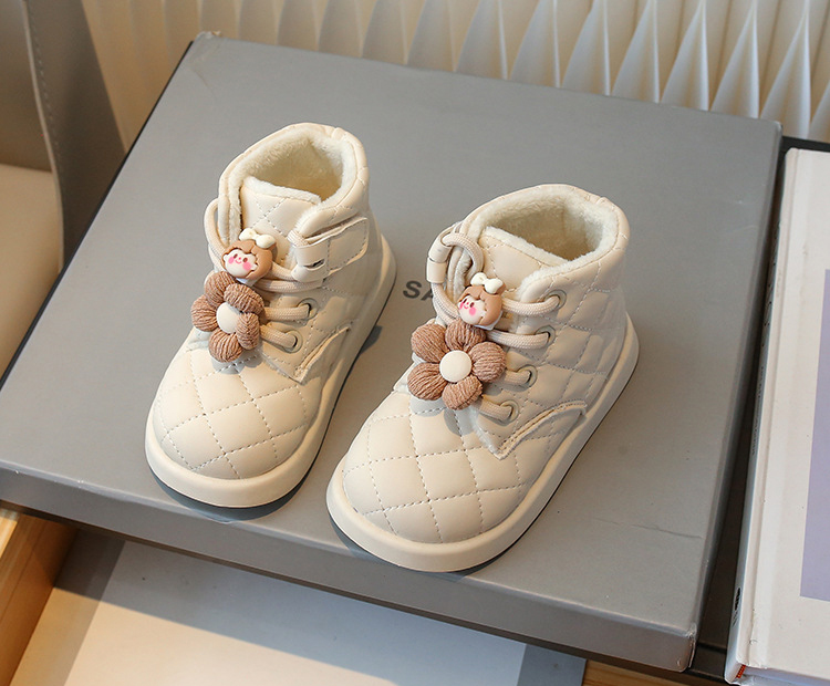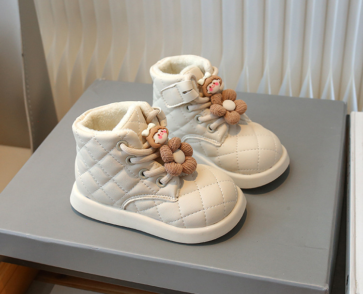 Cizme de iarnă din piele ecologică cu șireturi și vată interioară Flower Girl