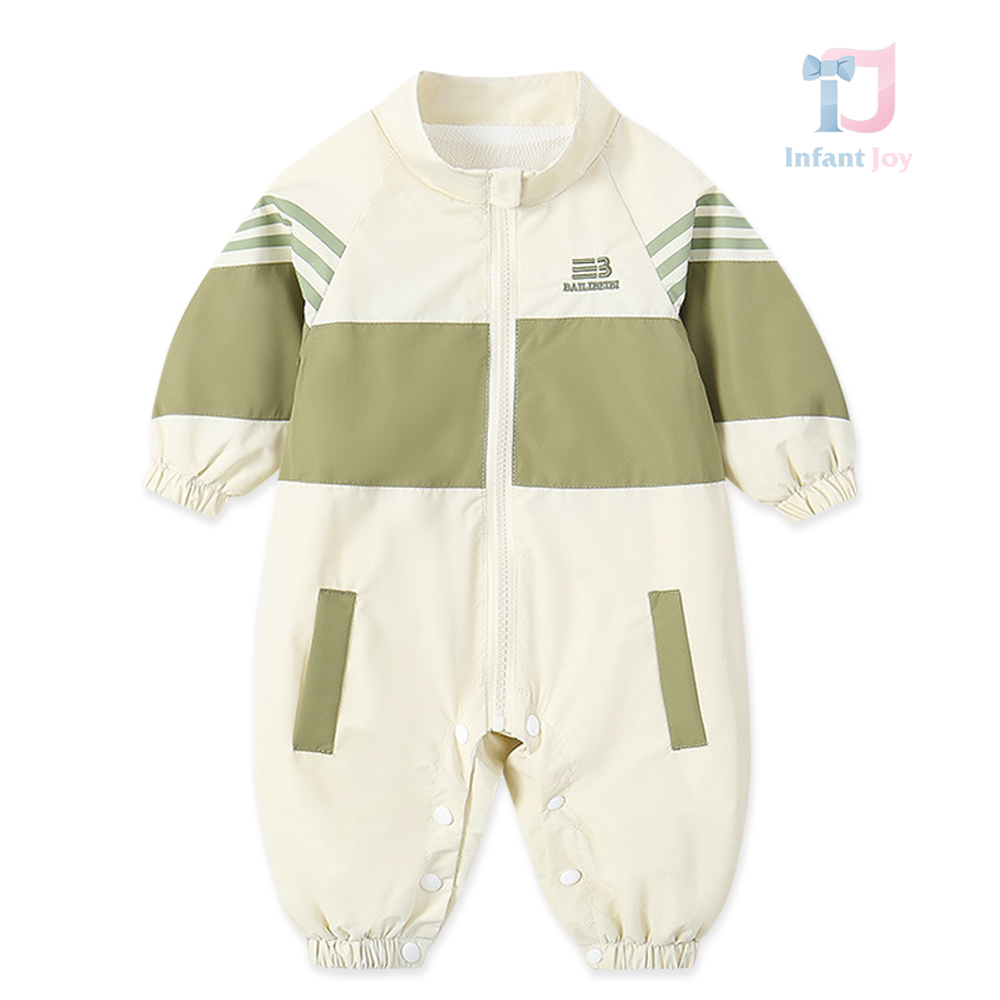 – Fermoar integral până la bărbie și capse tic-tac pe cusătura interioară a pantalonilor pentru îmbrăcare rapidă și schimb de scutece.