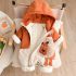 🧡 Într-o combinație de culori calde – mâneci și glugă portocalii, cu o bază neutră, ceea ce îl face ușor de asortat cu alte haine.