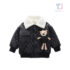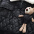 Geacă din piele ecologică matlasată cu Karakul cald și urs 3D Black Bimbo