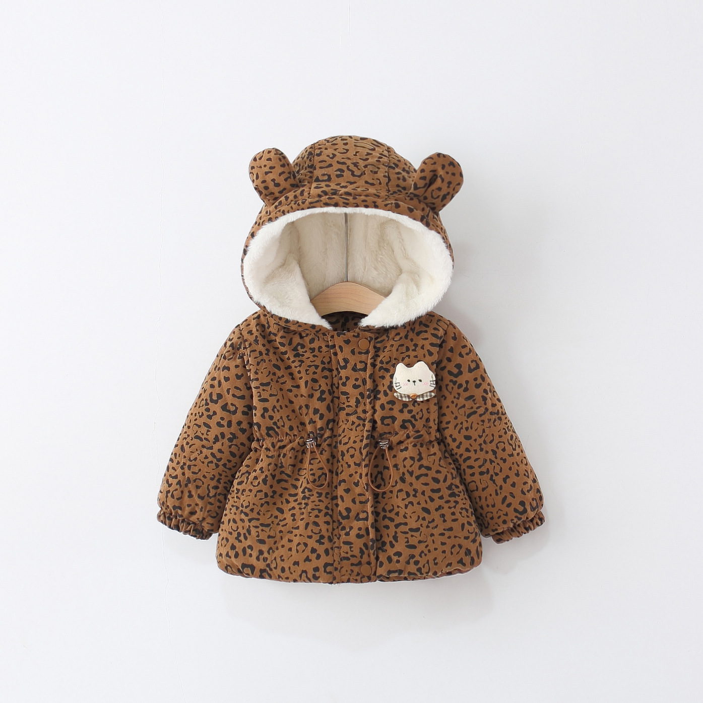 🐆 Glugă cu urechiușe 3D pentru un aspect jucăuș, completată de o aplicație cu pisicuță în zona pieptului – un detaliu adorabil pentru copii.