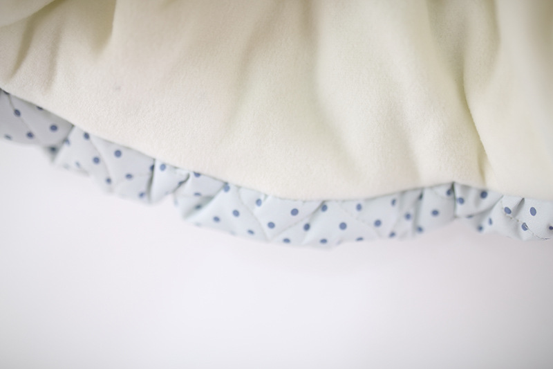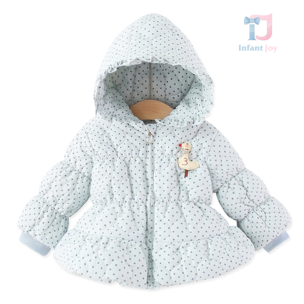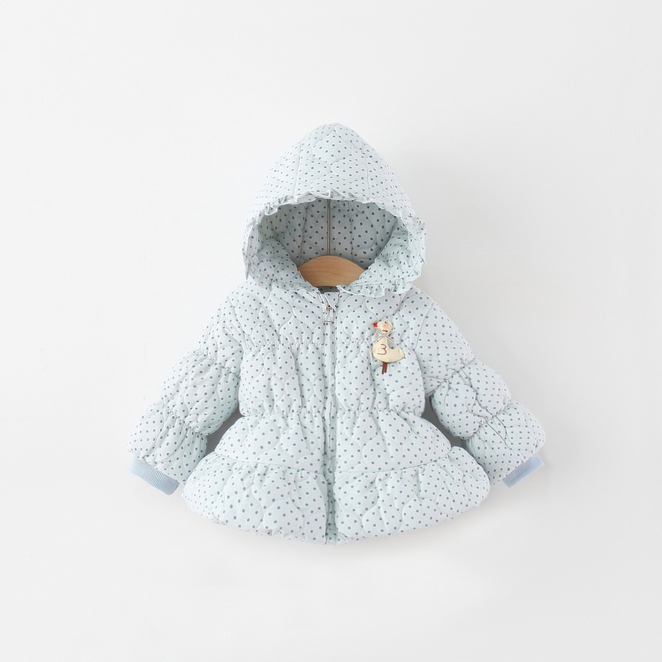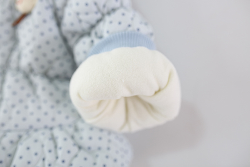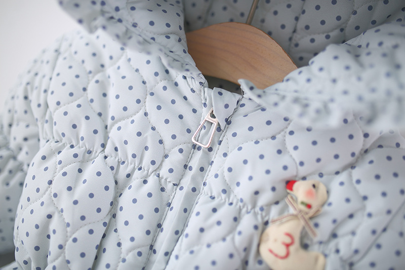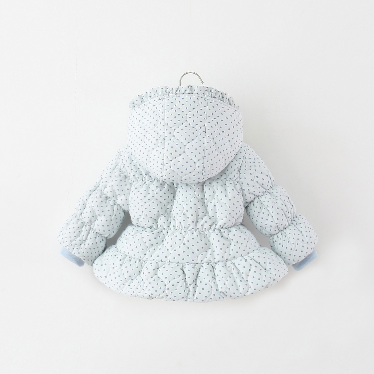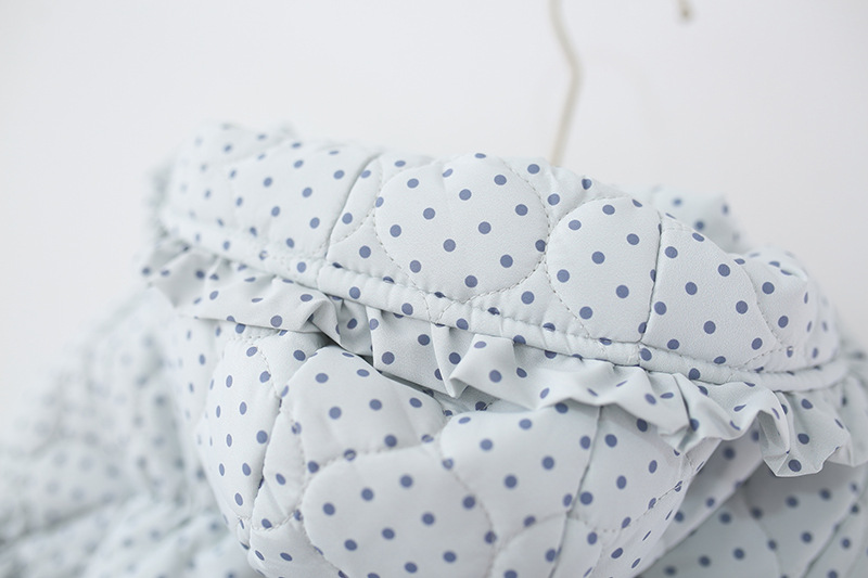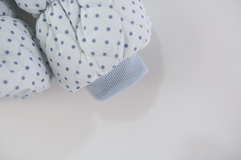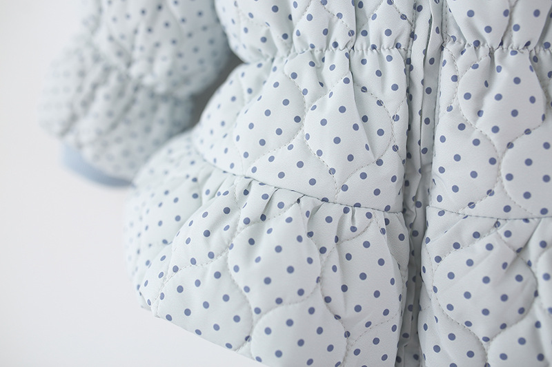 🩵 Model într-o nuanță de albastru ciel, cu buline fine, confecționat din material căptușit, ușor dar călduros, cu interior moale pentru confort în zilele reci.