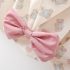 🧸Accentele principale sunt fundițele roz cusute pe piept și glugă.