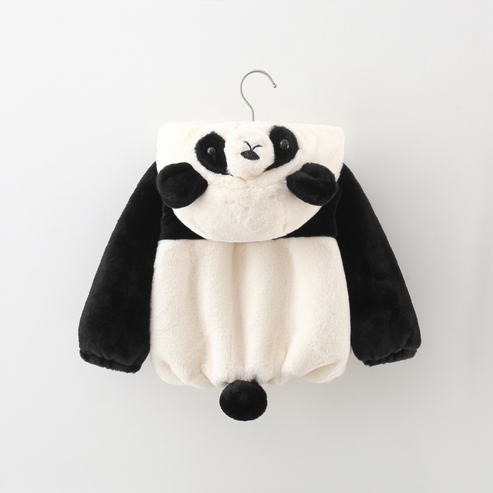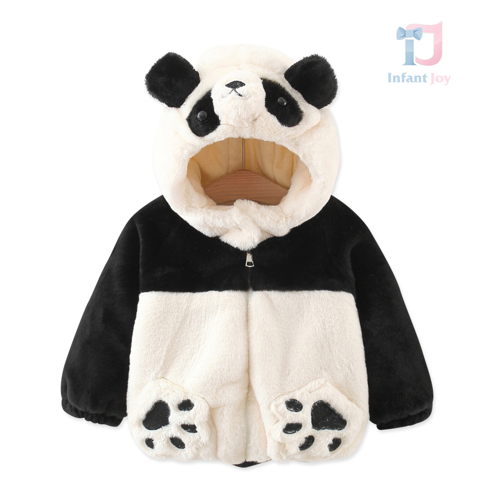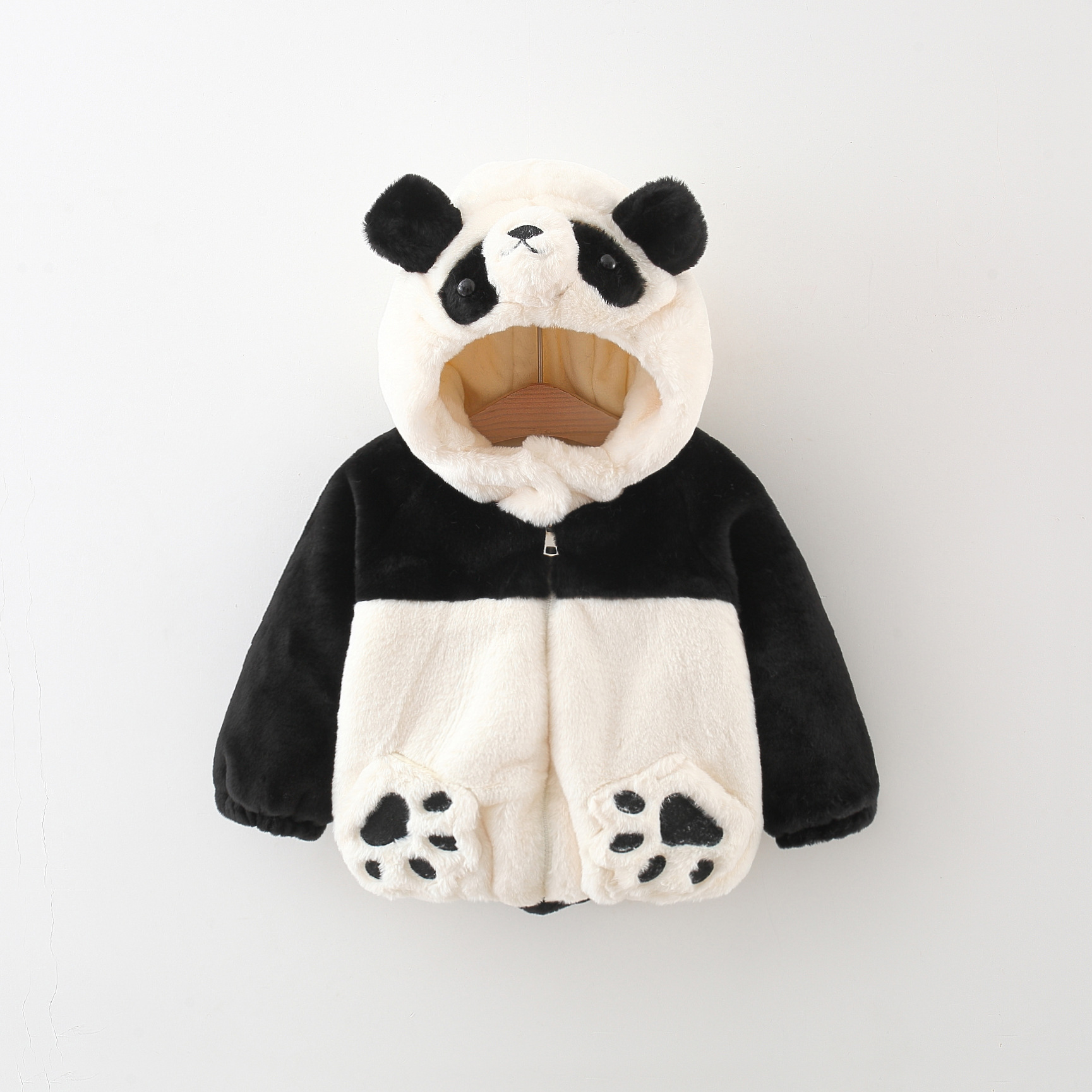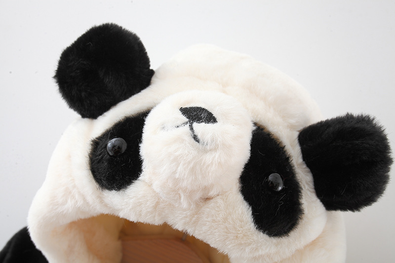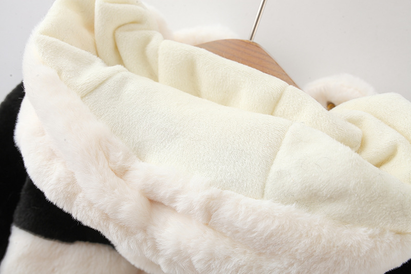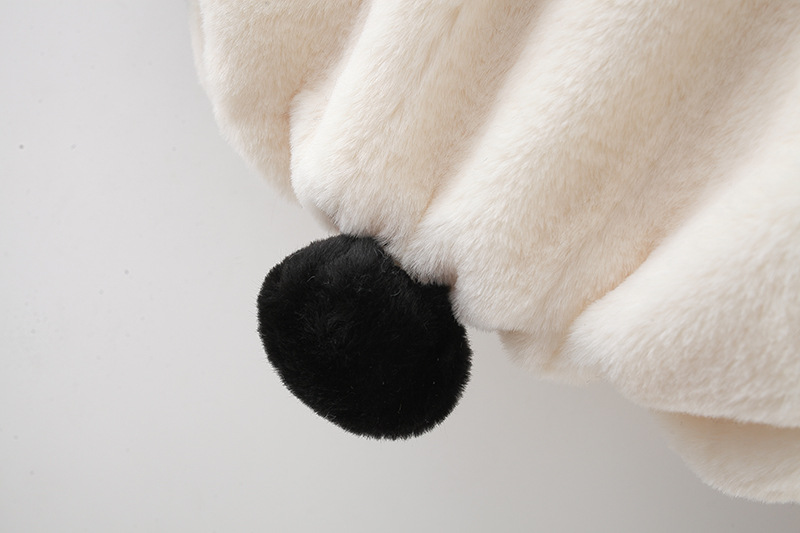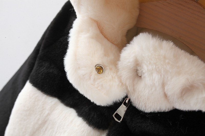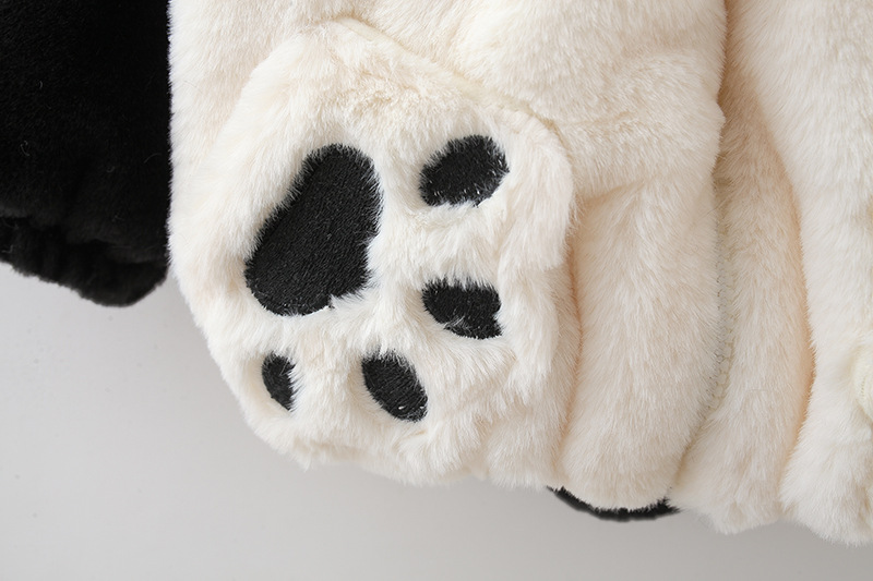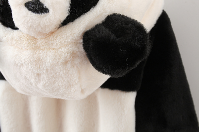 Geacă pufoasă din pluș călduros cu glugă și urechi 3D Furry Panda