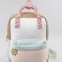 🎀 Design în culori delicate – crem, mentă și roz pudră, accentuate de un fermoar coral pentru un plus de prospețime.